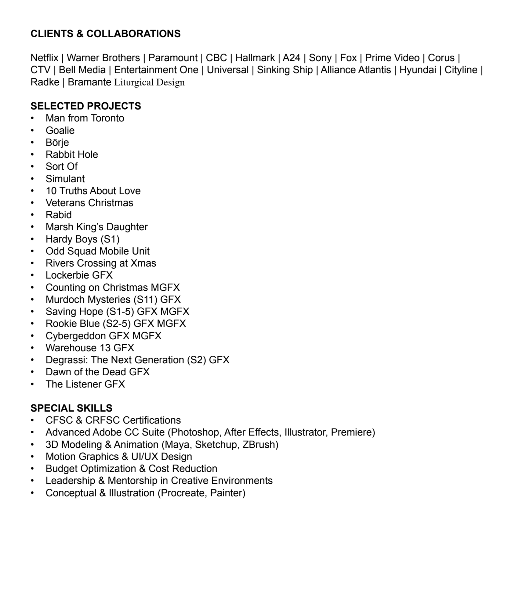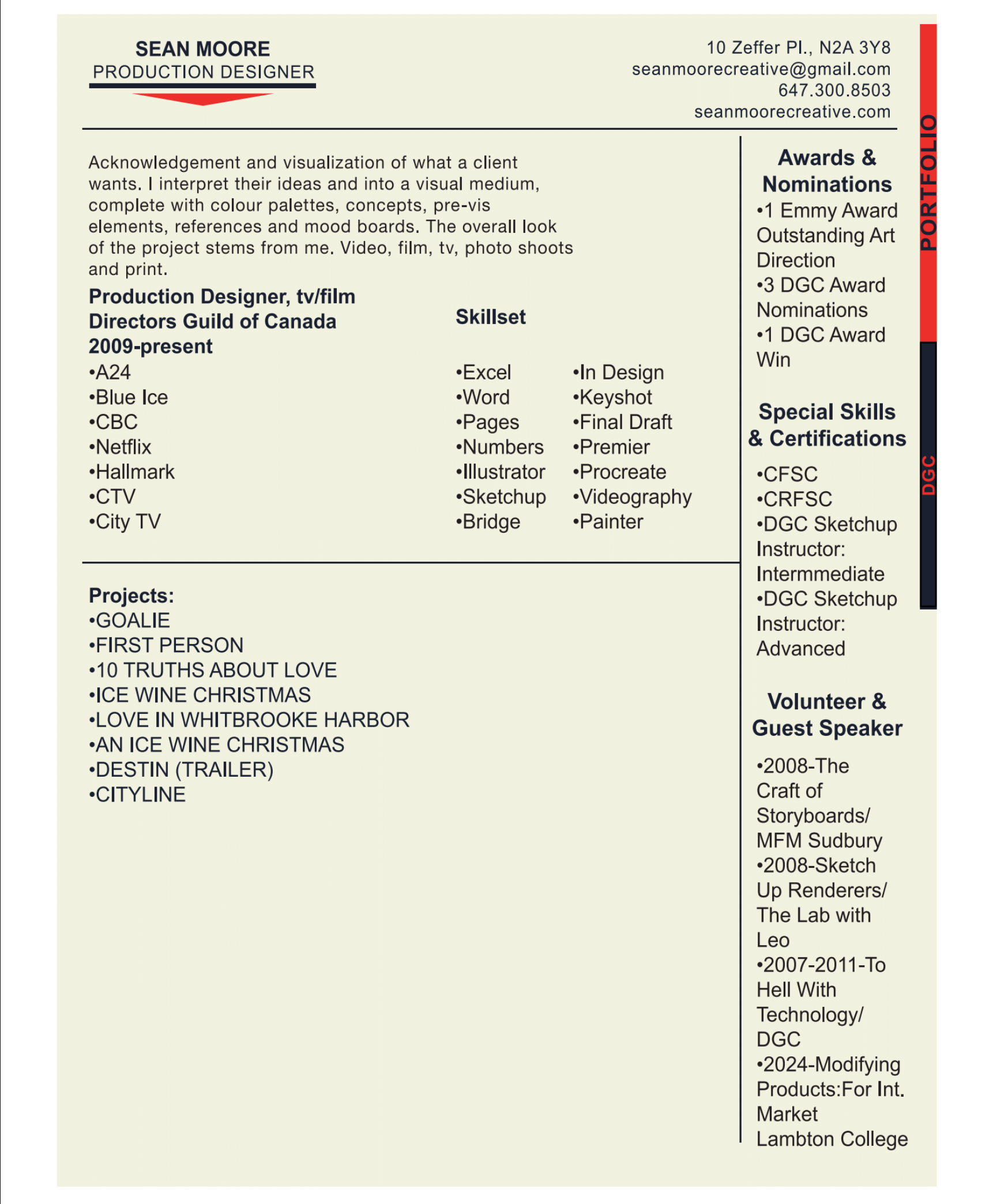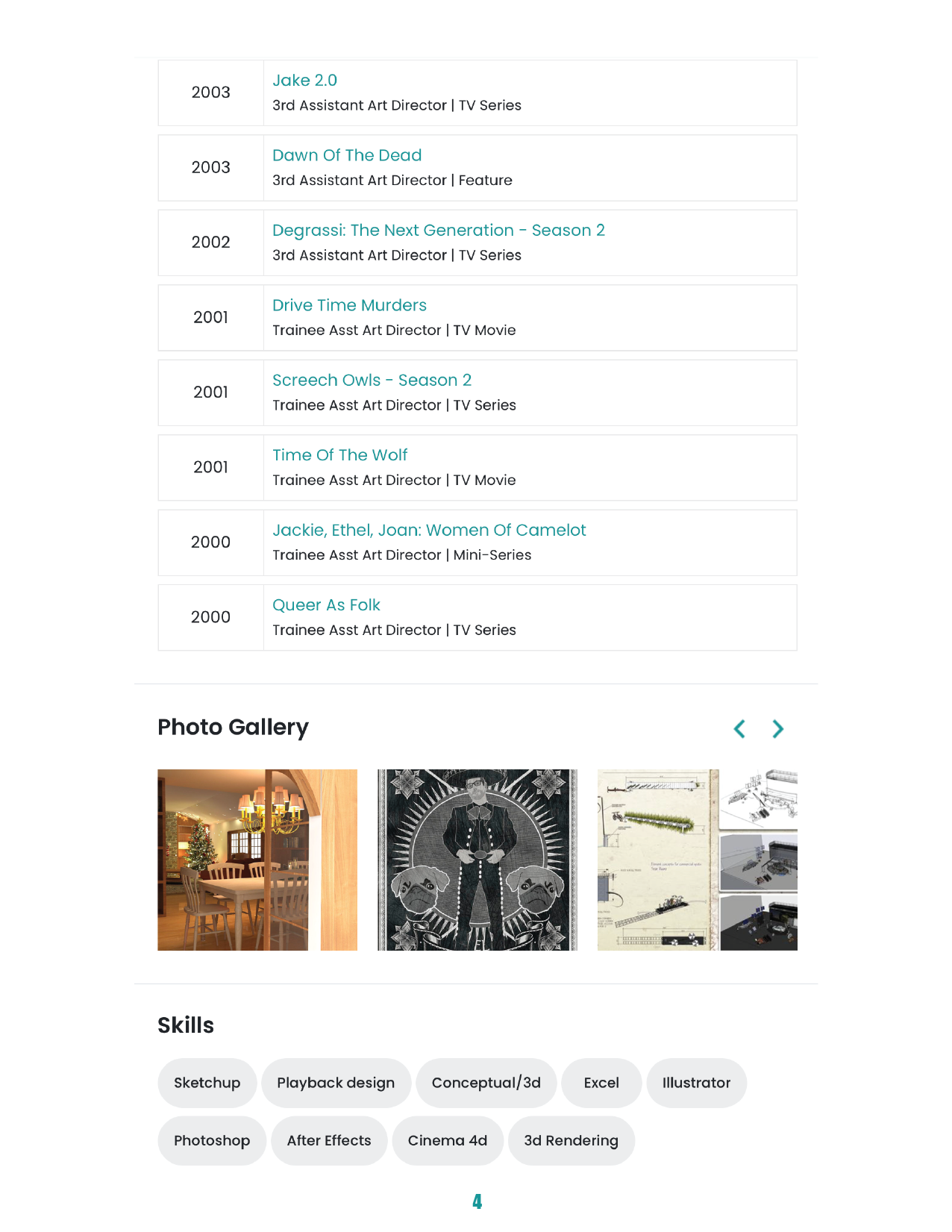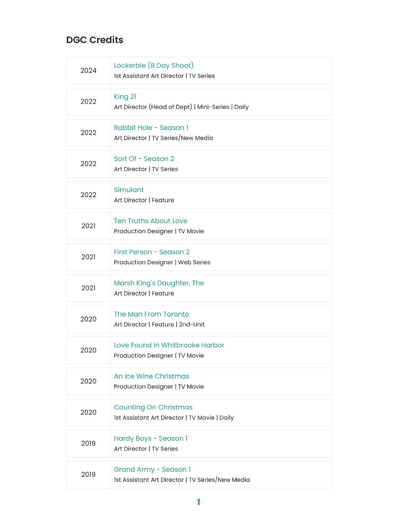 PRODUCTION DESIGNER 1 Page CV