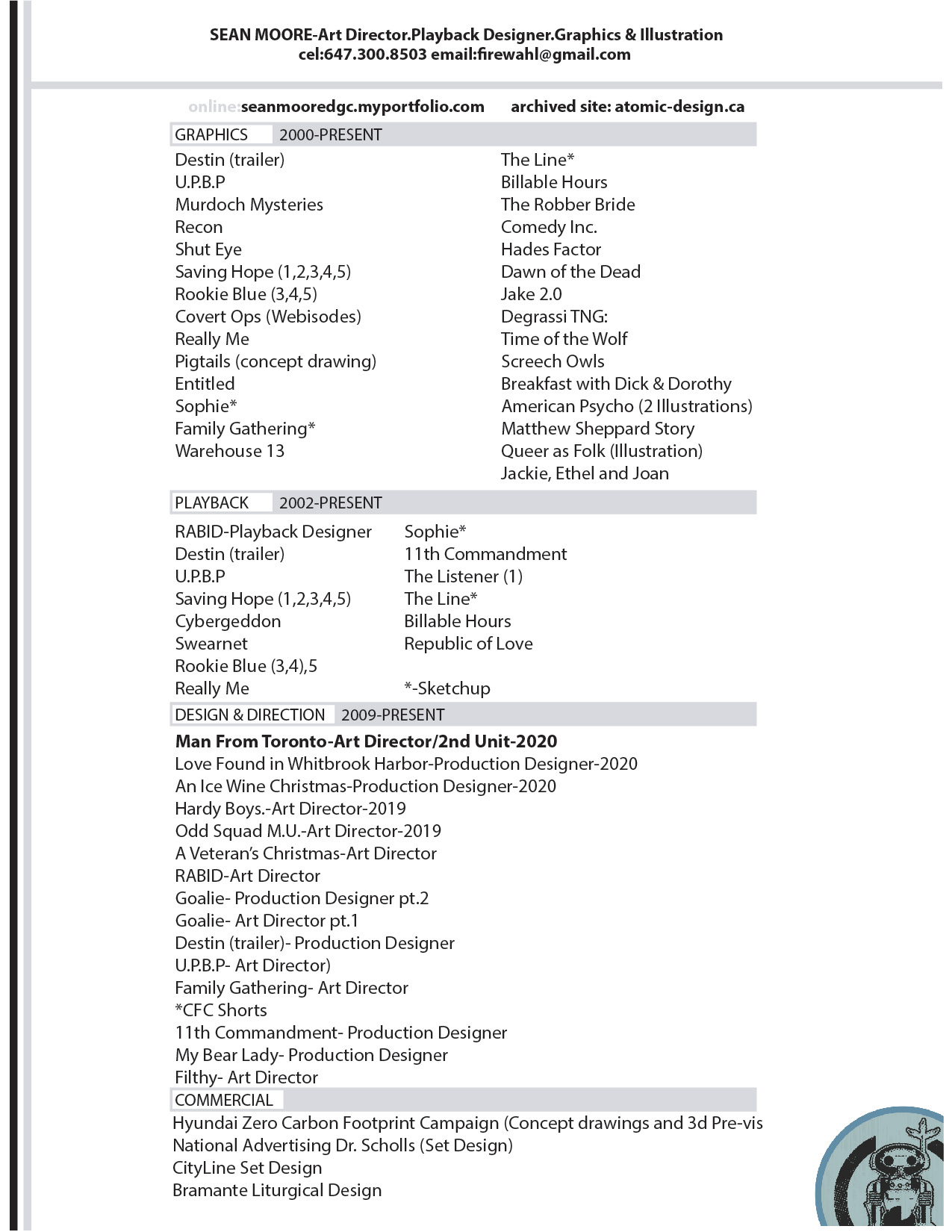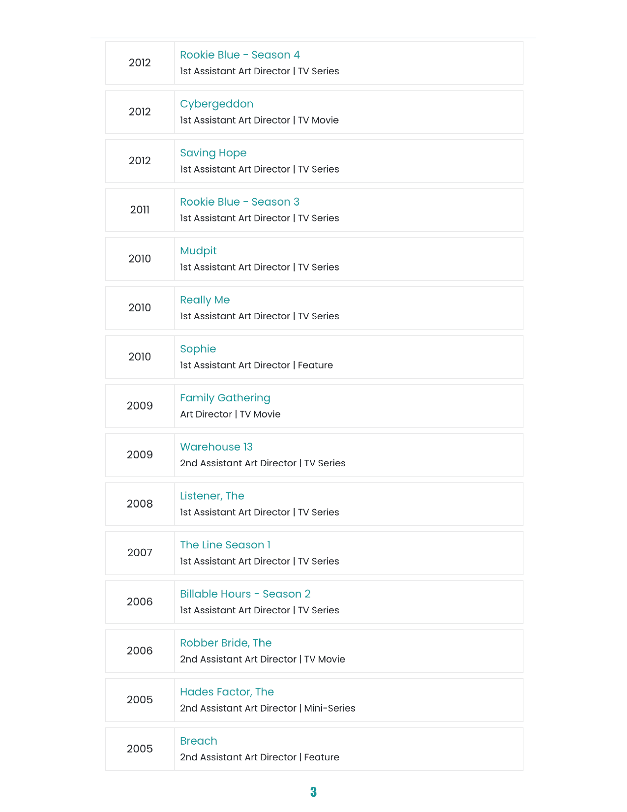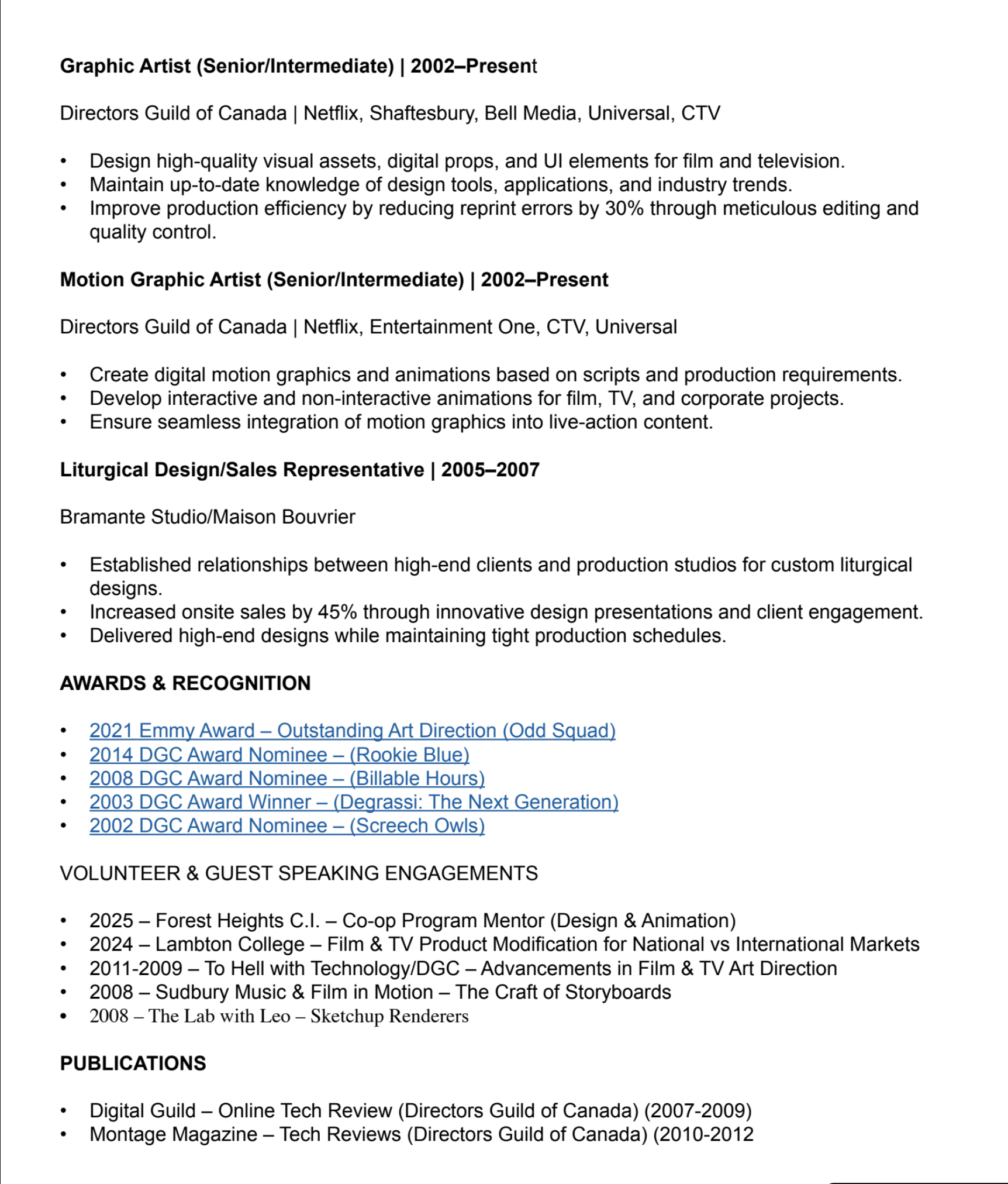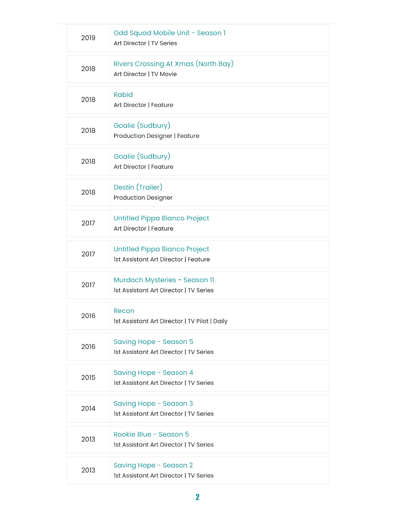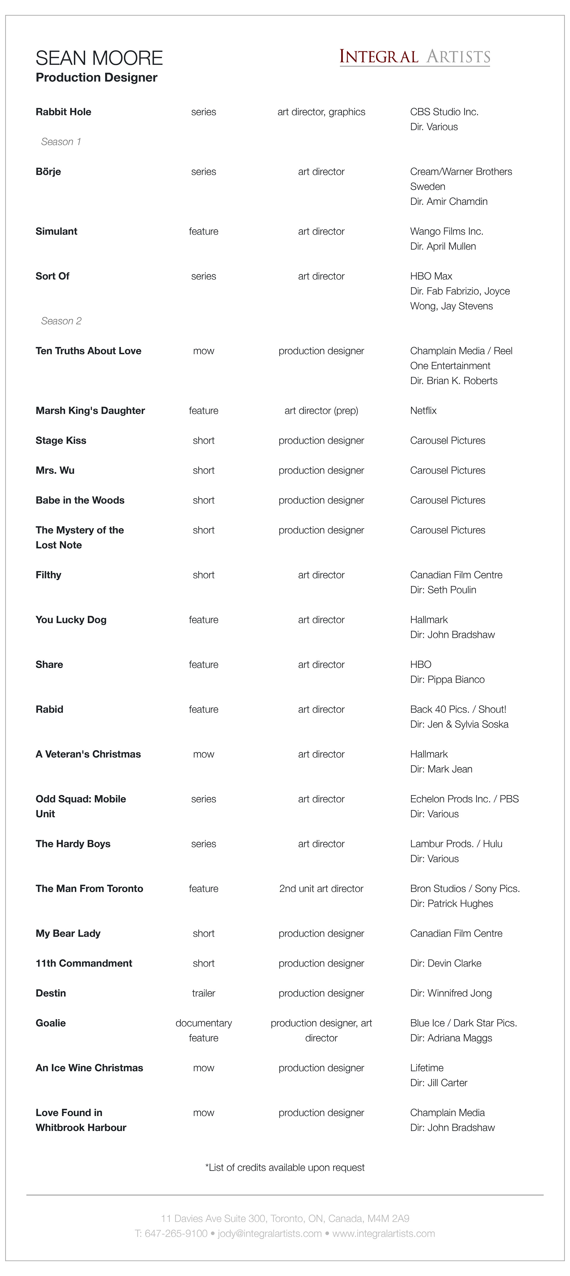 PRODUCTION DESIGNER 1 Page CV